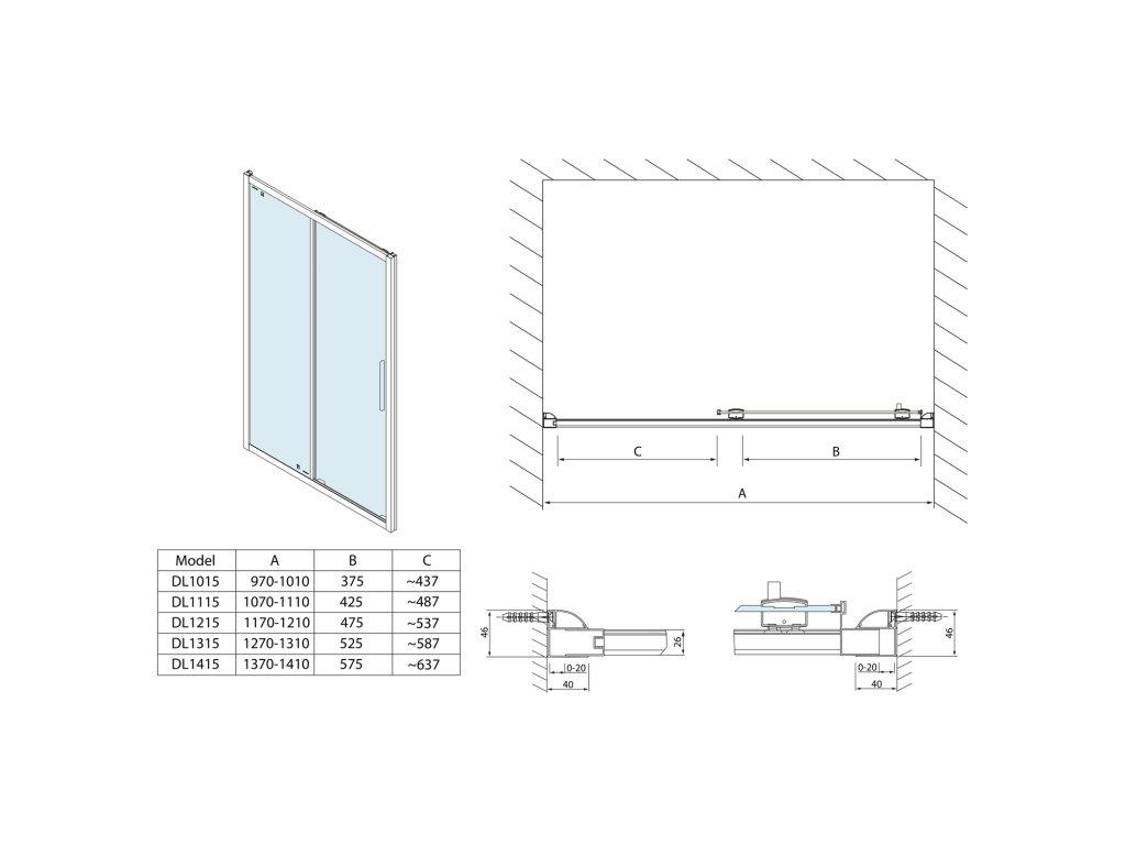 - Snadnou montáž umožňuje výsuvný stěnový profil v rozmezí 0-20 mm