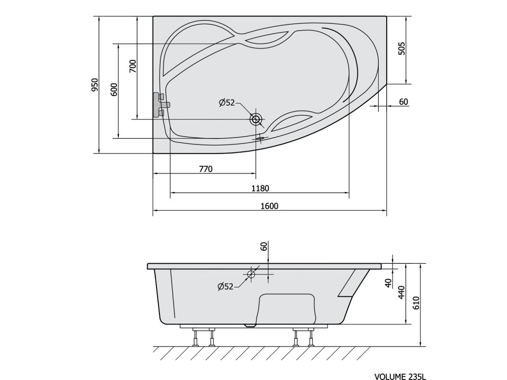 Polysan MAMBA L asymetrická vana 160x95x44cm, bílá 27111