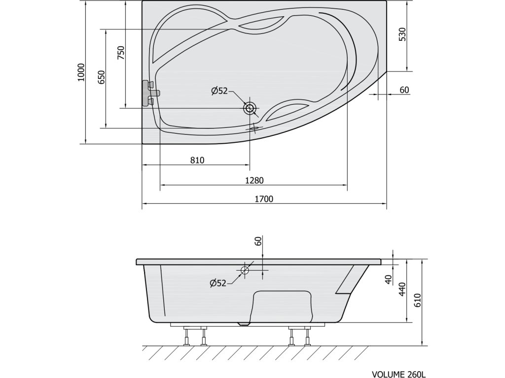 Polysan MAMBA L asymetrická vana 170x100x44cm, bílá 76111