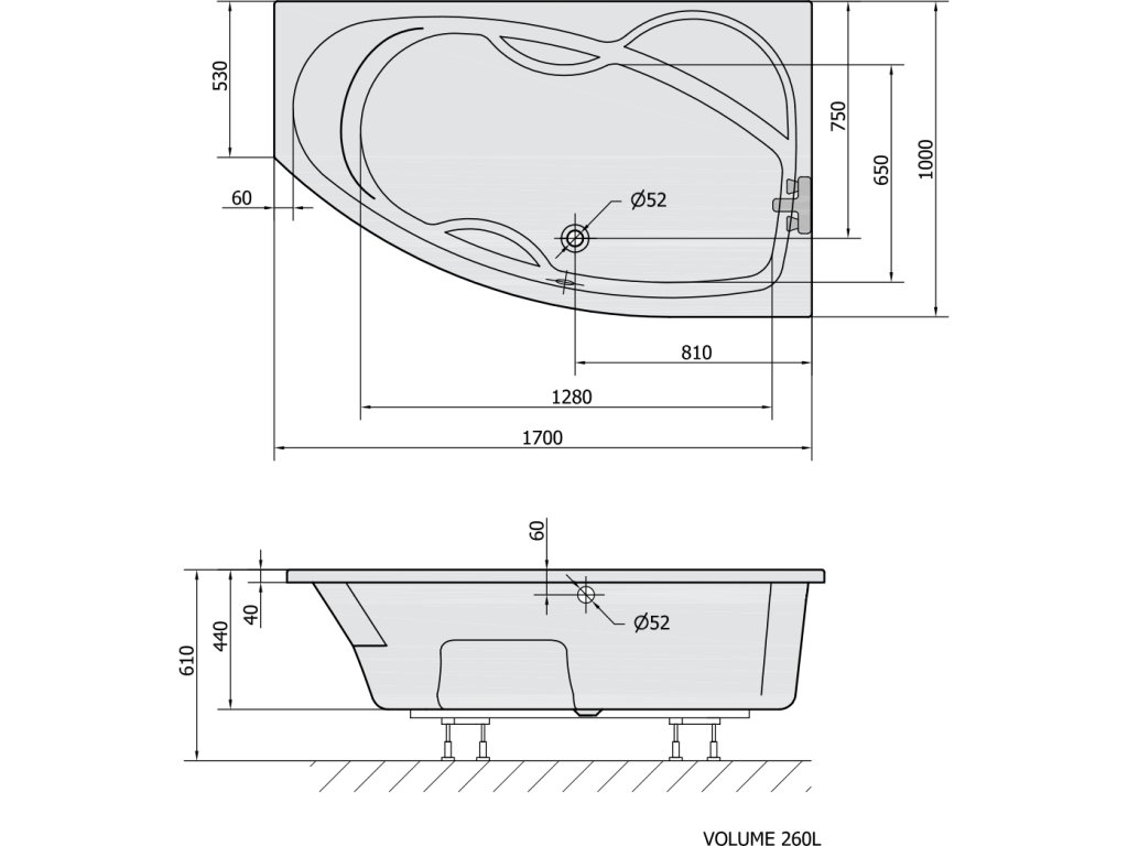 Polysan MAMBA R asymetrická vana 170x100x44cm, bílá 77111
