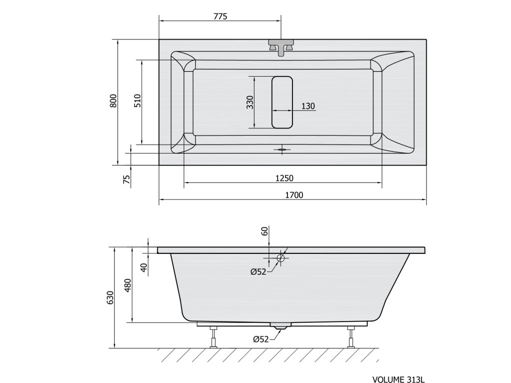 Polysan MARLENE obdélníková vana 170x80x48cm, bílá 72403