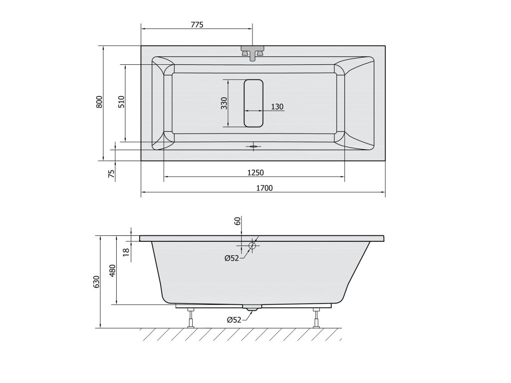 Polysan MARLENE SLIM obdélníková vana 170x80x48cm, bílá 72403S