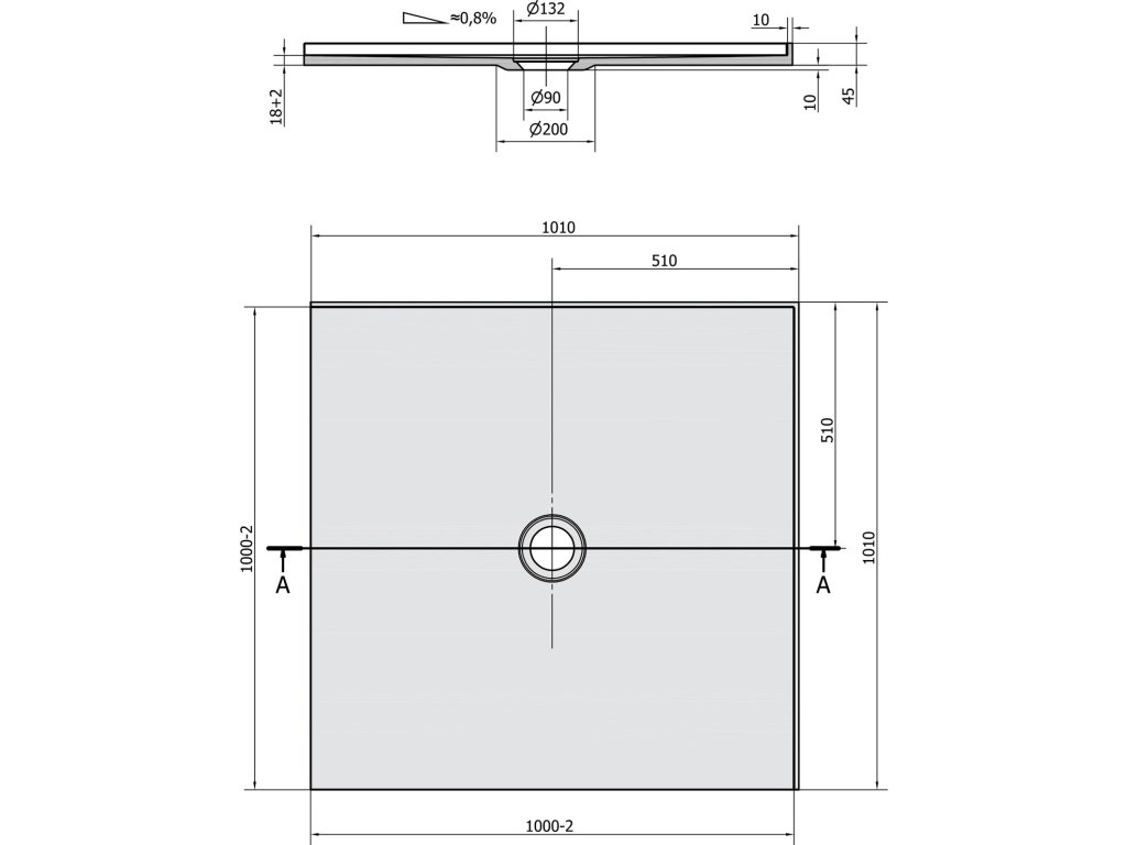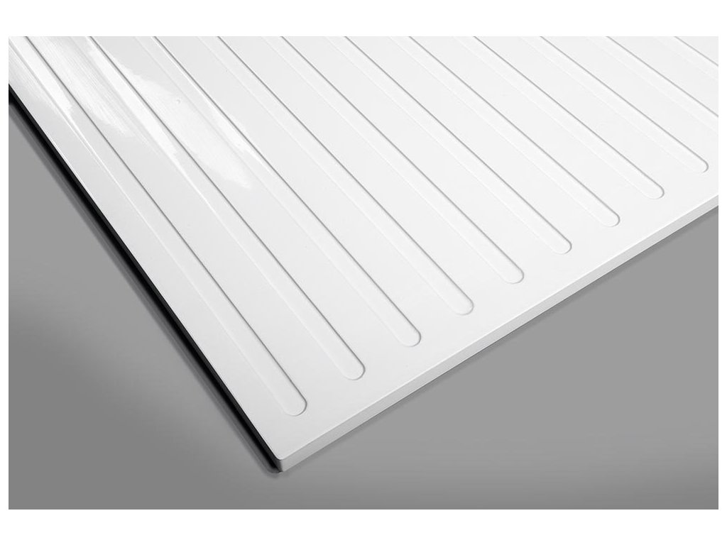 - Drážky na spodní straně umožňují vaničku nalepit přímo na podlahu. Díky nízké výšce 18 mm lze dlažbu nalepit do stejné roviny s vaničkou.