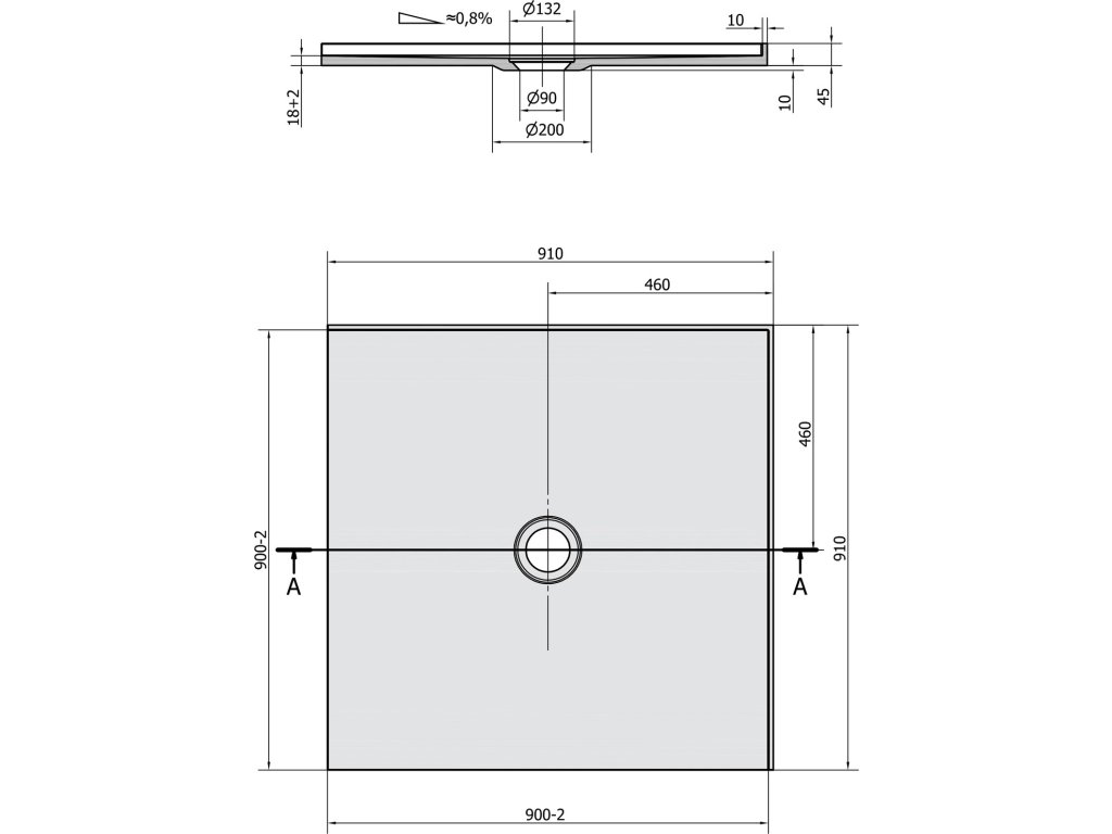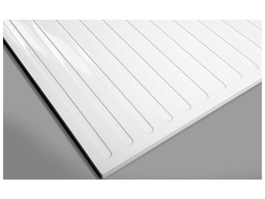 - Drážky na spodní straně umožňují vaničku nalepit přímo na podlahu. Díky nízké výšce 18 mm lze dlažbu nalepit do stejné roviny s vaničkou.