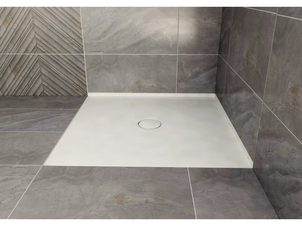 Polysan MIRAI sprchová vanička z litého mramoru, čtverec 90x90x1, 8cm, bílá 73165