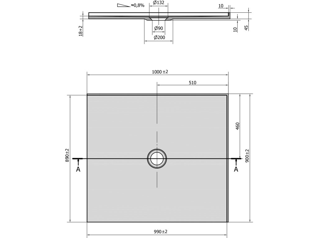 - Drážky na spodní straně umožňují vaničku nalepit přímo na podlahu. Díky nízké výšce 18 mm lze dlažbu nalepit do stejné roviny s vaničkou.