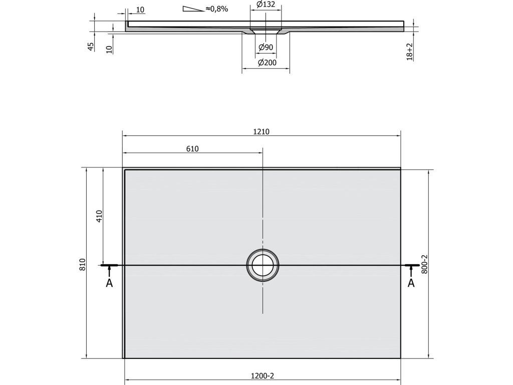 - Drážky na spodní straně umožňují vaničku nalepit přímo na podlahu. Díky nízké výšce 18 mm lze dlažbu nalepit do stejné roviny s vaničkou.