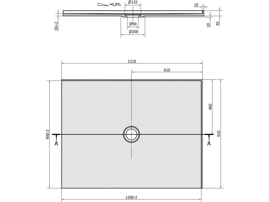 - Drážky na spodní straně umožňují vaničku nalepit přímo na podlahu. Díky nízké výšce 18 mm lze dlažbu nalepit do stejné roviny s vaničkou.