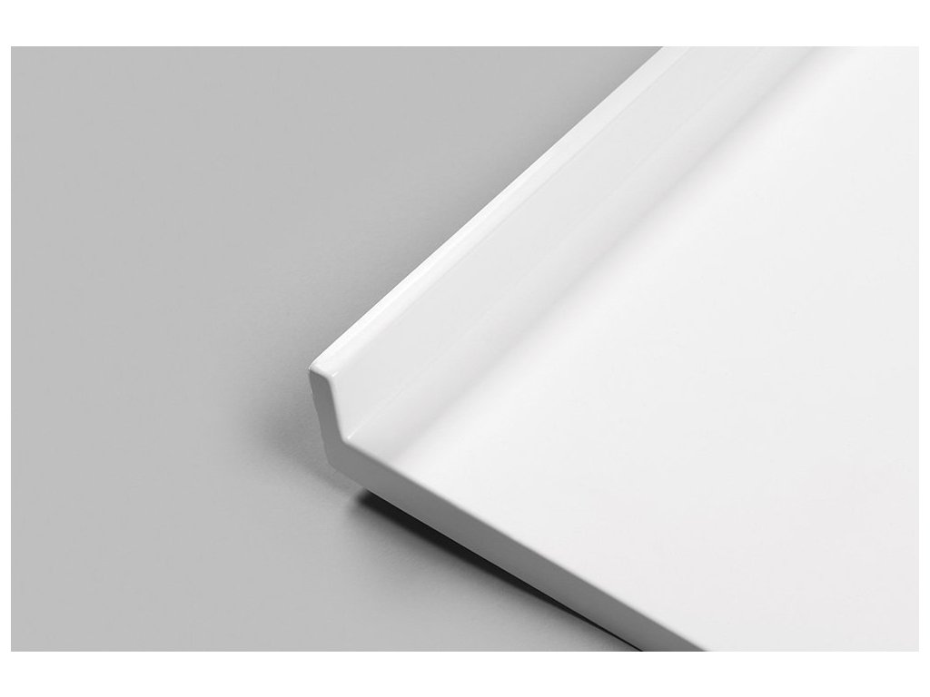 - Zvýšený lem vaničky umožňuje plynulé napojení na obklad. Voda ze stěny přirozeně stéká do vaničky.
