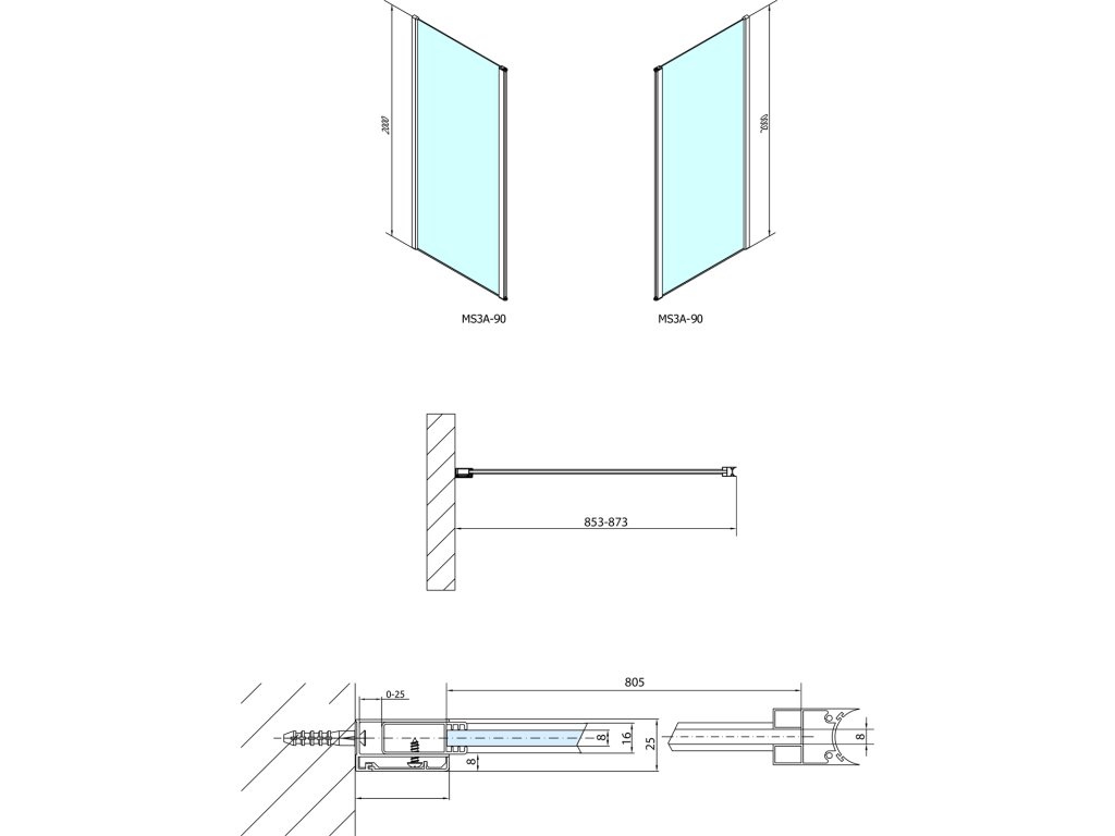 Soubory ke stažení:Koncept zástěn MODULAR SHOWR nabízí moduly skel s profily pro snadnou montáž. Skla jsou vespodu opatřena hliníkovým profilem, který dodává zástěnám elegantní vzhled, lépe těsní a usnadňuje manipulaci a instalaci. Dle rozměrů skel je vždy nutno dokoupit potřebnou vzpěru pro zajištění stability zástěny. Vzpěry jsou zhotoveny z nerez oceli a lze je libovolně zkracovat, řez je schován v zakončovacích dílech (vyjma rohových vzpěr, které nelze upravovat).