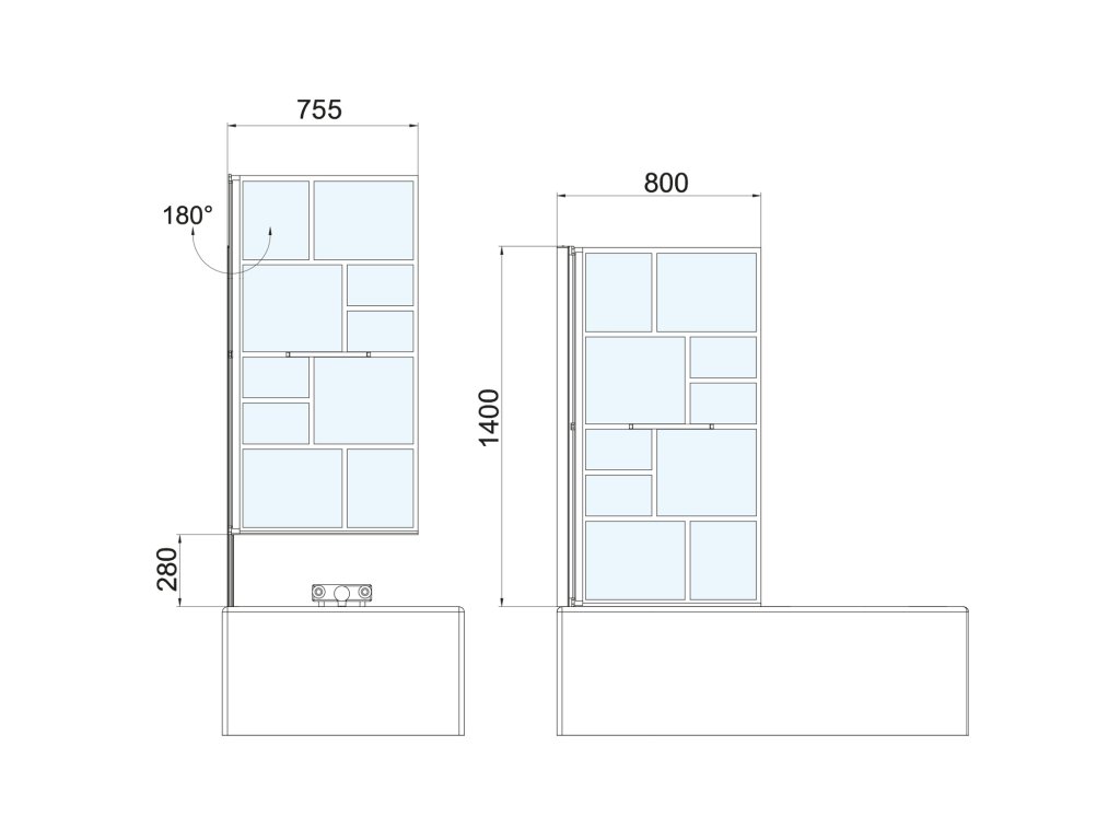 Polysan PARANA vanová zástěna s pneumatickým zdvihem, š. 800mm, černá mat, čiré sklo 30346B