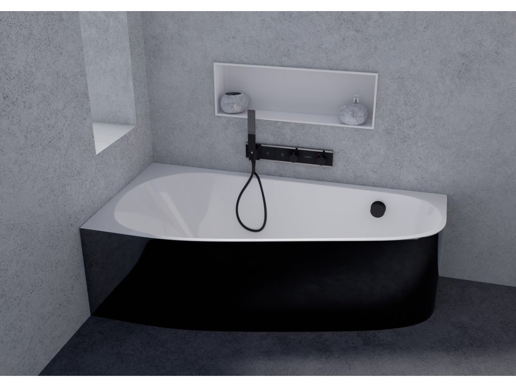 Polysan PROJEKTA L MONOLITH asymetrická stojící vana 156x77x60cm, bílá/černá 20111MB