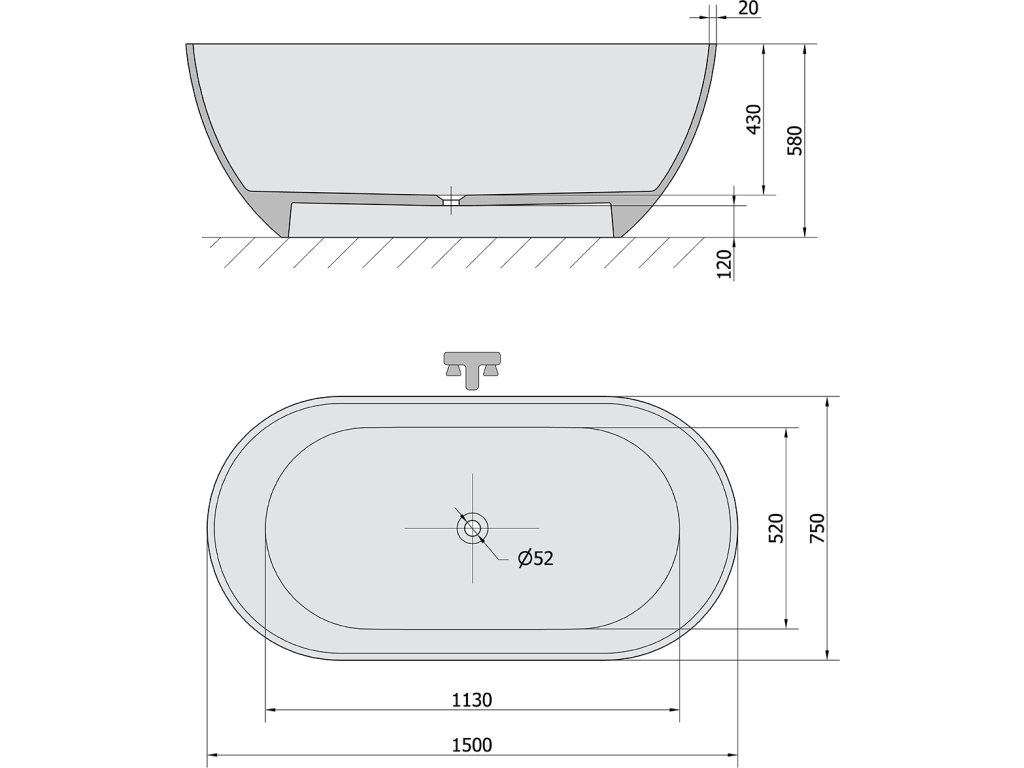 Polysan REDUTA volně stojící vana litý mramor 150x75x58cm, bílá 71843
