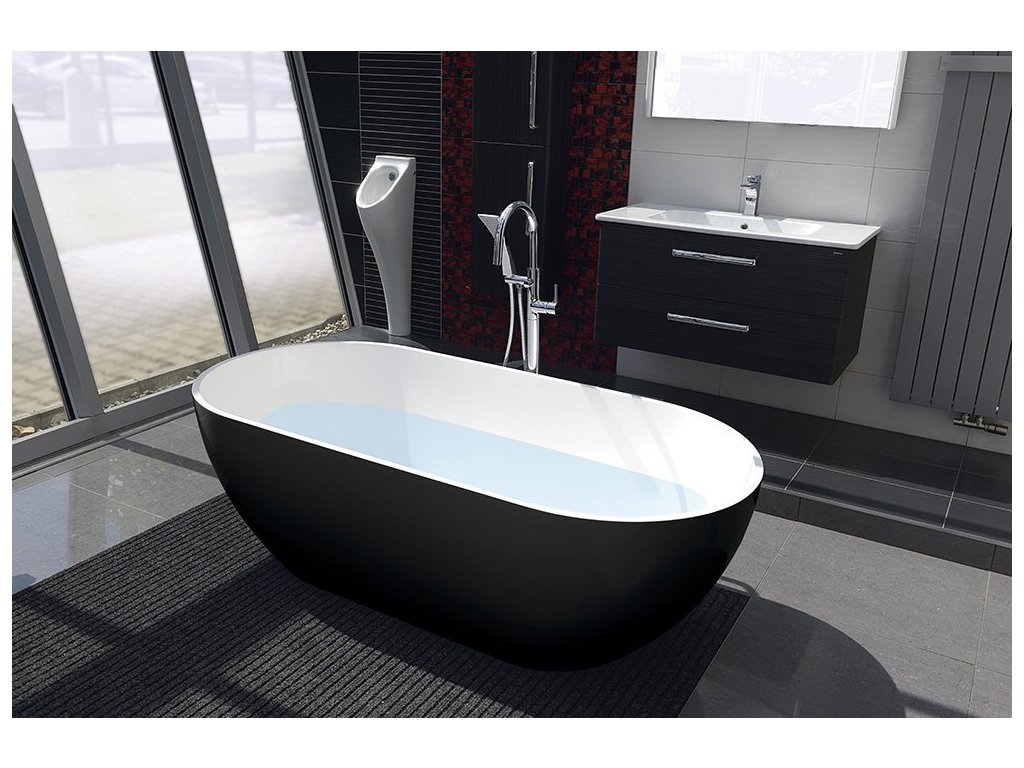 Polysan REDUTA volně stojící vana litý mramor 150x75x58cm, černá/bílá 71974