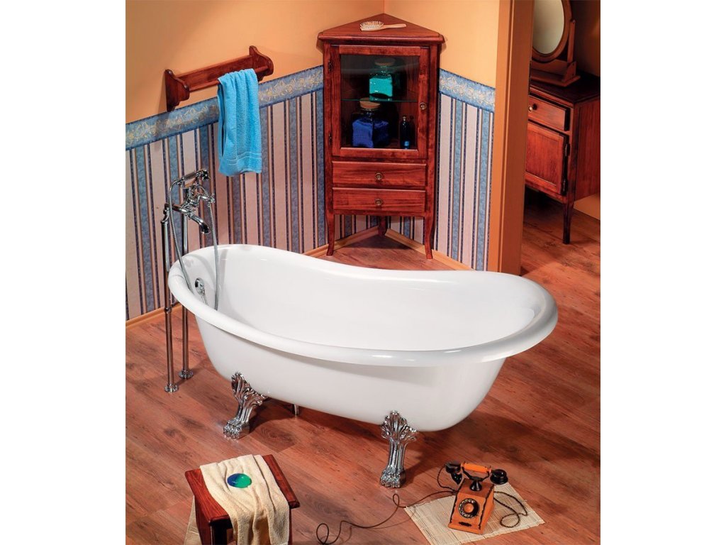 Polysan RETRO volně stojící vana 158x76x71cm, nohy chrom mat, bílá 37122