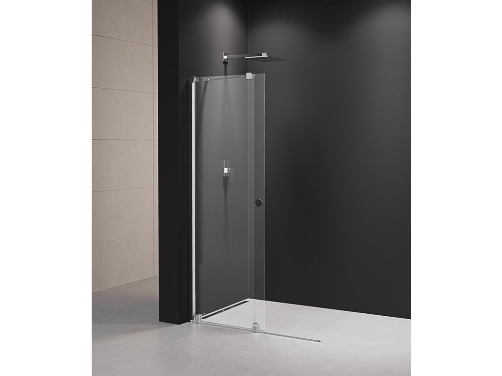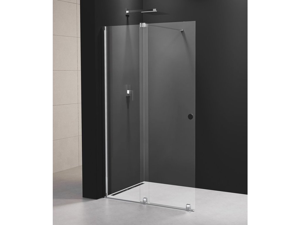 - Dvojdílné sprchové dveře do prostoru (pevná a posuvná část) s hliníkovými profily v chromu nebo matně černé povrchové úpravě