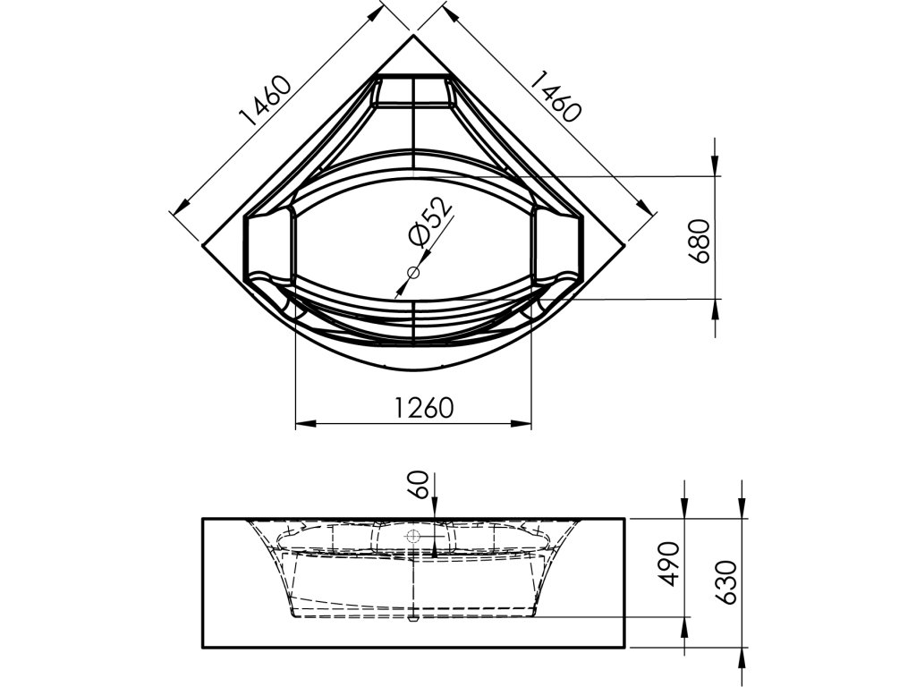 Polysan ROSANA MONOLITH rohová vana 146x146x63cm, bílá 63119M