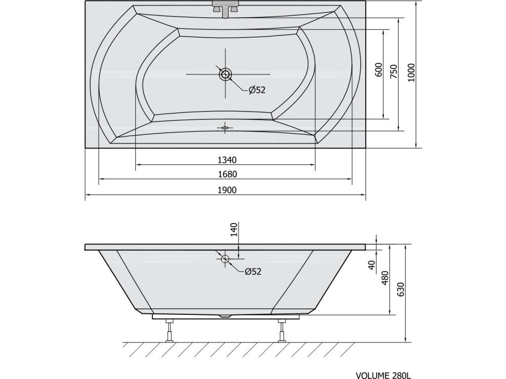 Polysan SALSA obdélníková vana 190x100x47cm, bílá 44119