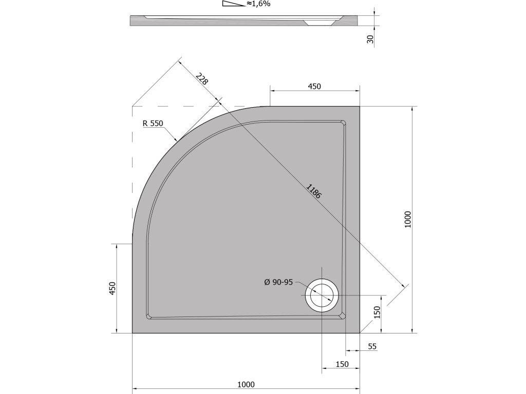 Polysan SERA sprchová vanička z litého mramoru, čtvrtkruh 100x100cm, R550, bílá 62111