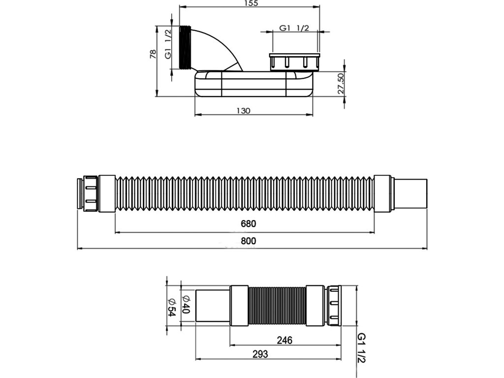 Polysan Sifon nízký 6/4", s flexi připojovací hadicí DN40 72194