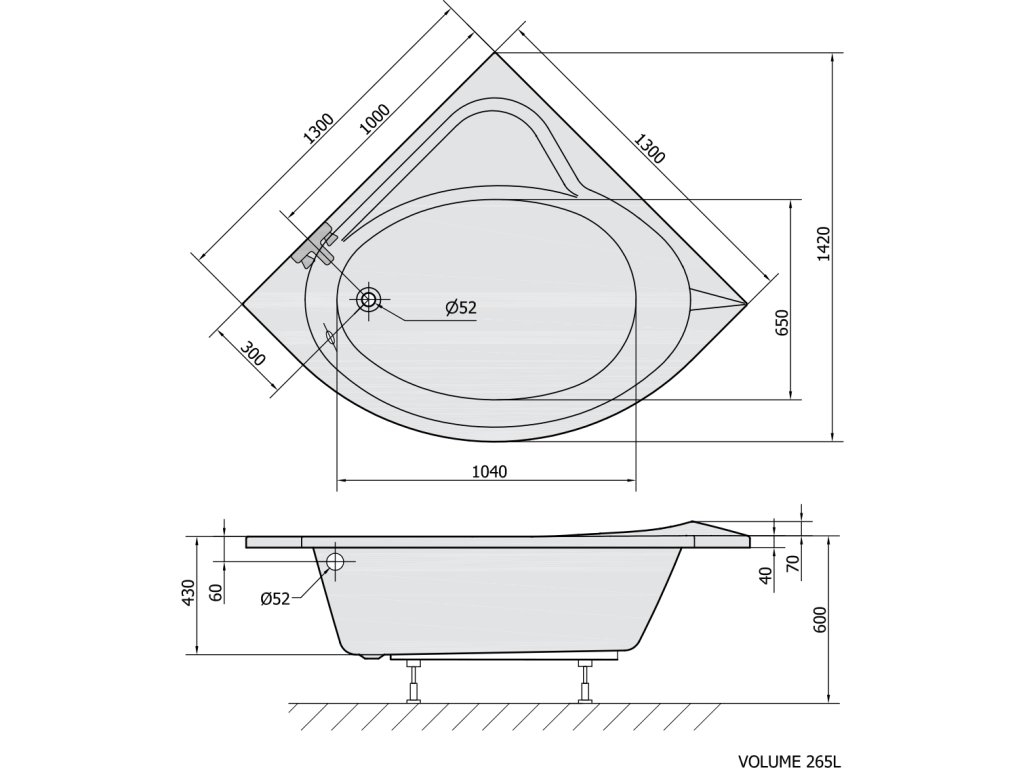 Polysan SIRIUS rohová vana 130x130x43cm, bílá 49111