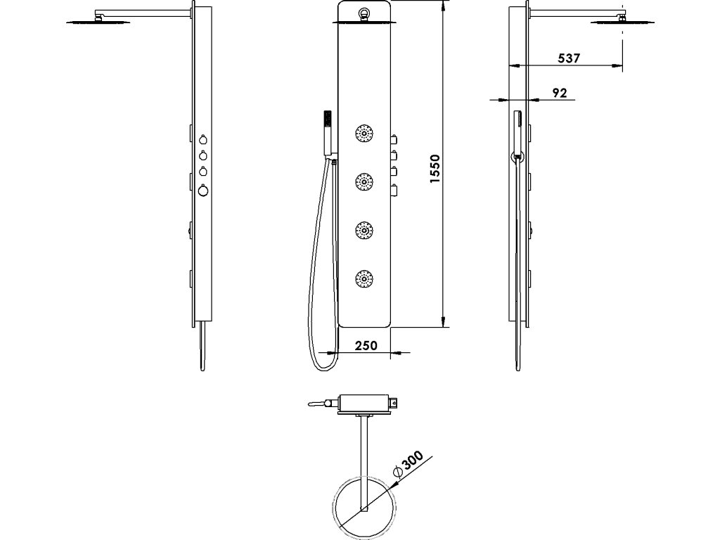 Polysan SPIRIT ROUND termostatický sprchový panel 250x1550mm, černá 71251