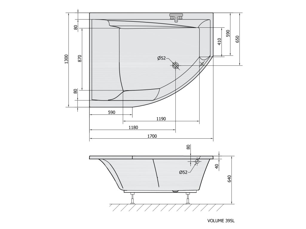 Polysan TANDEM L asymetrická vana 170x130x50cm, bílá 96611