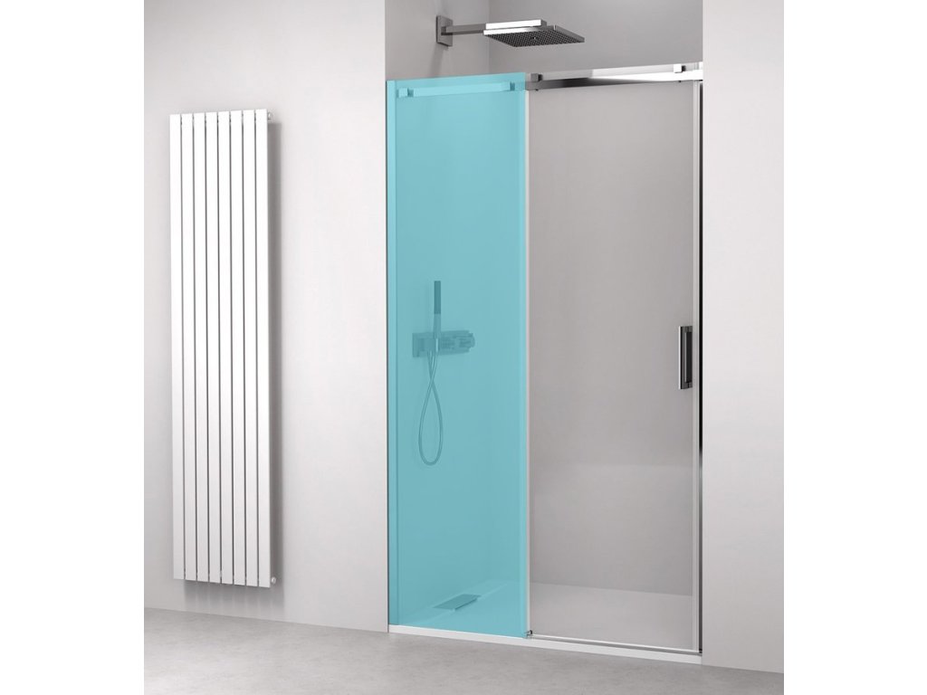 - Dveře jsou děleny na část posuvnou a pevnou - umožňují variabilní instalaci s levým nebo pravým otevíráním