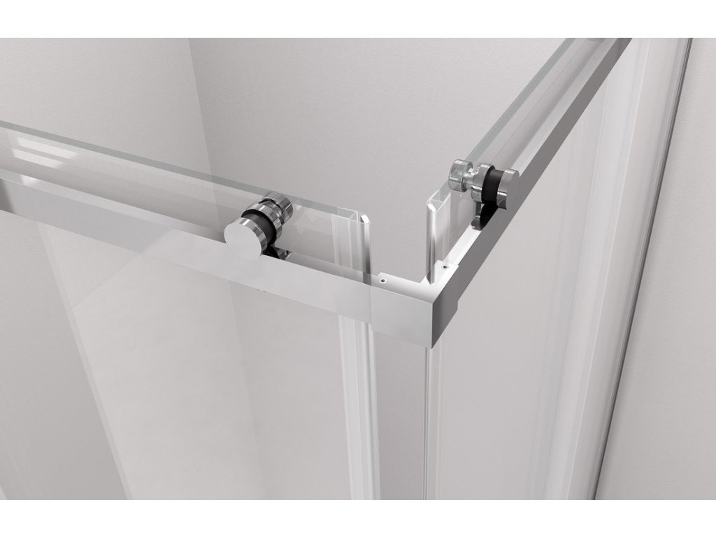 - Dveře jsou děleny na část posuvnou a pevnou - umožňují variabilní instalaci s levým nebo pravým otevíráním