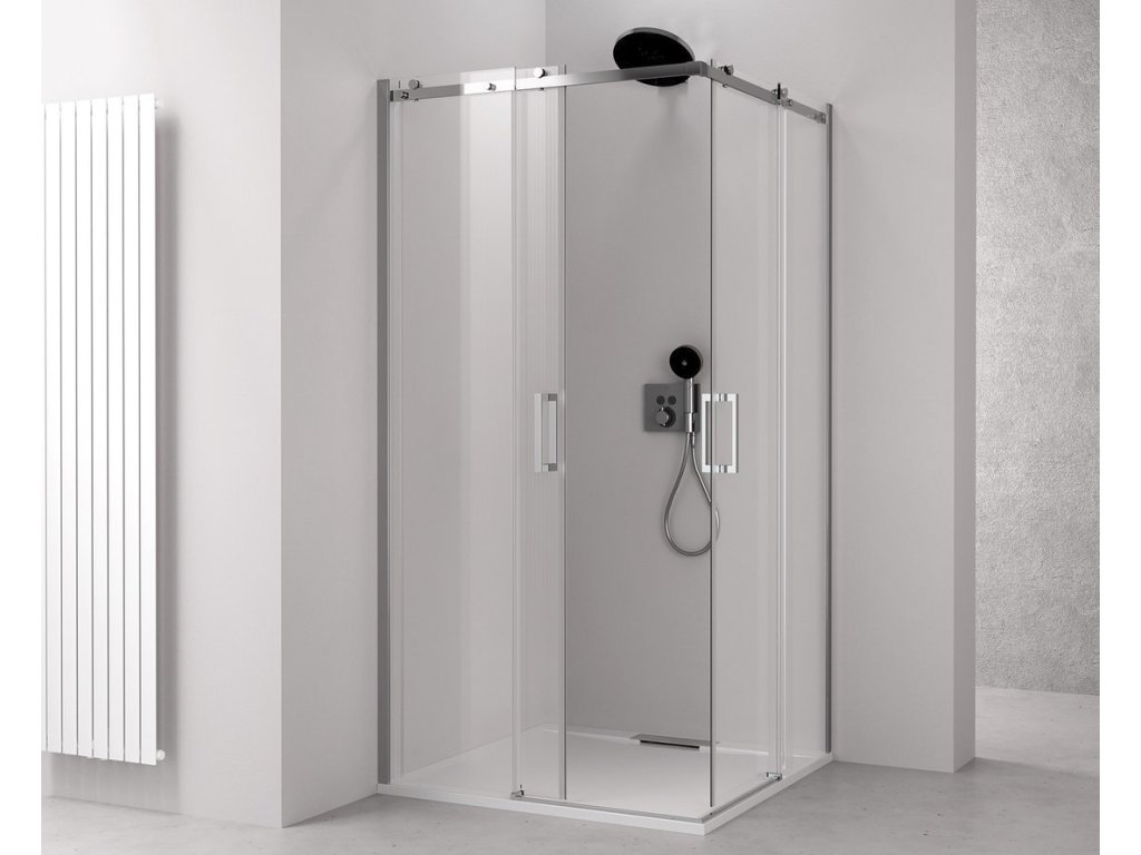 - Dveře jsou děleny na část posuvnou a pevnou - umožňují variabilní instalaci s levým nebo pravým otevíráním