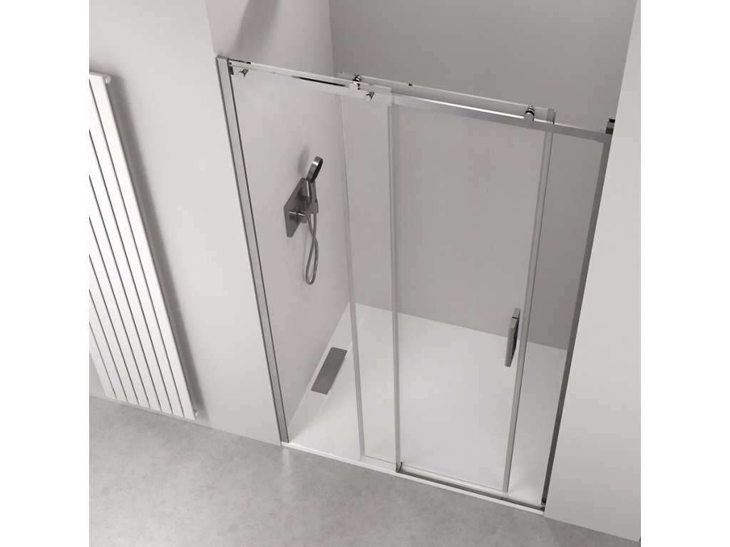 - Dveře jsou děleny na část posuvnou a pevnou - umožňují variabilní instalaci s levým nebo pravým otevíráním