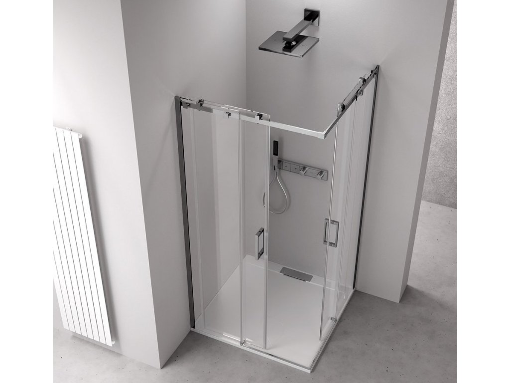 - Dveře jsou děleny na část posuvnou a pevnou - umožňují variabilní instalaci s levým nebo pravým otevíráním