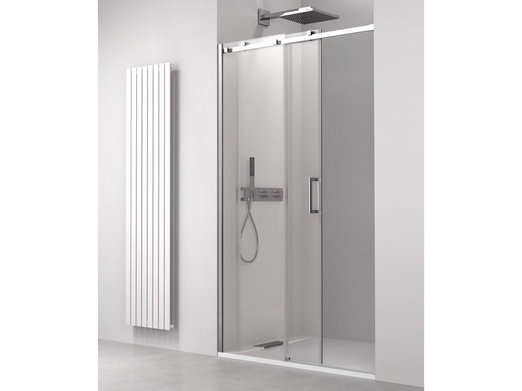 - Dveře jsou děleny na část posuvnou a pevnou - umožňují variabilní instalaci s levým nebo pravým otevíráním
