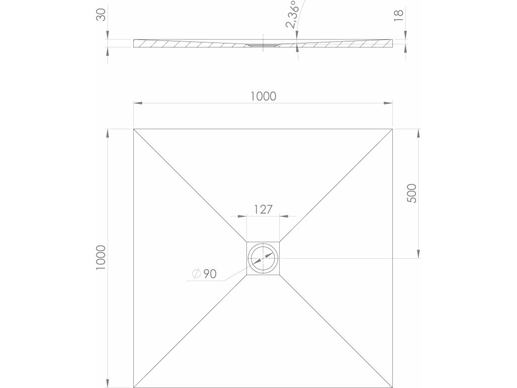- Čtvercové vaničky nabízíme v rozměrech 90x90 a 100x100 cm