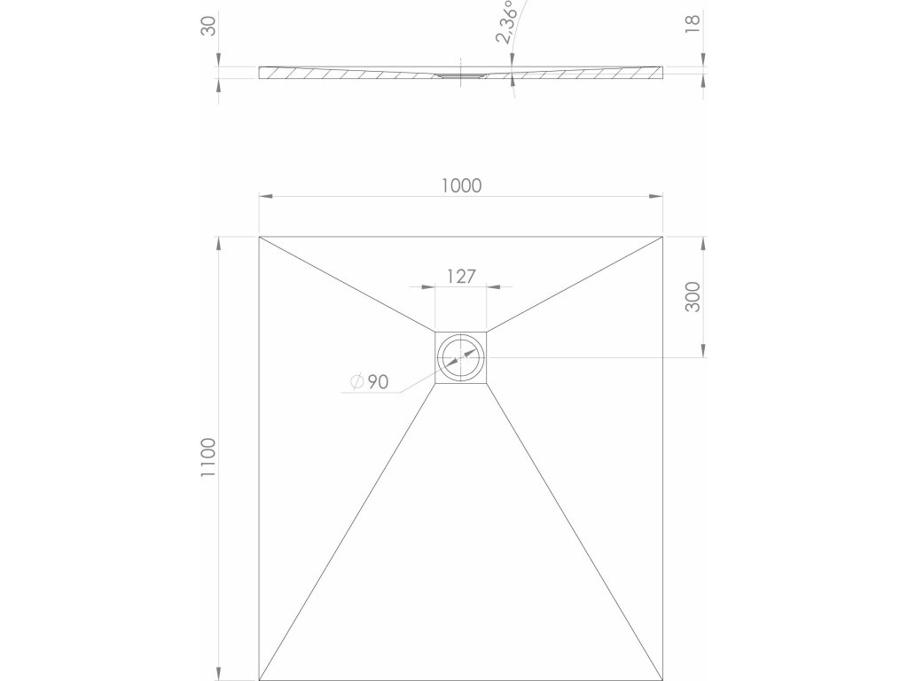 - Čtvercové vaničky nabízíme v rozměrech 90x90 a 100x100 cm
