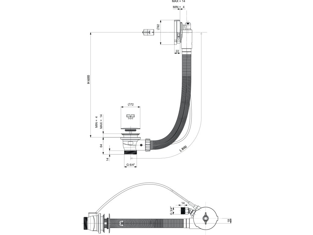 Polysan Vanová souprava s napouštěním, bovden, délka 800mm, zátka 72mm, černá mat 71853.21