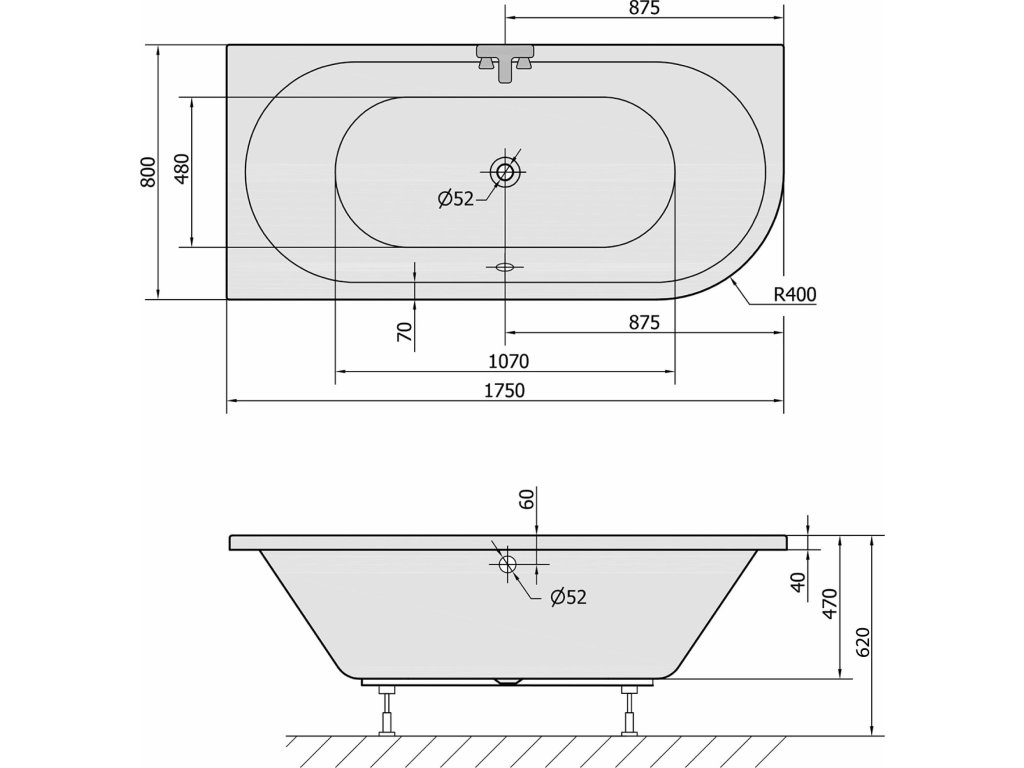 Polysan VIVA L asymetrická vana 175x80x47cm, bílá 70119