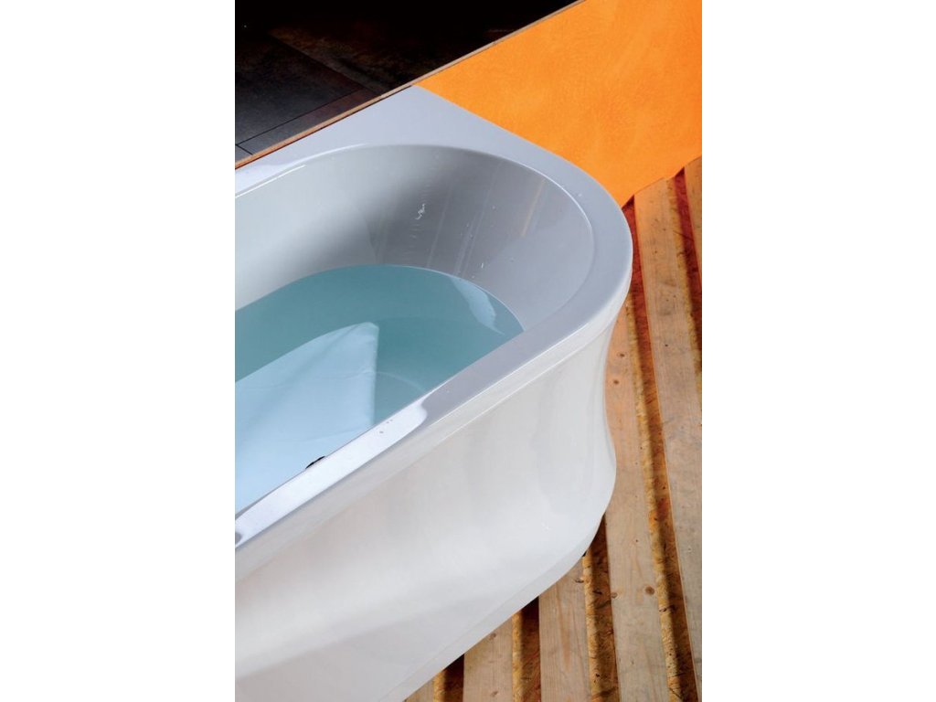 Vana s pohodlně tvarovanými stěnami pro opření zad na obou stranách a odtokem umístěným uprostřed.