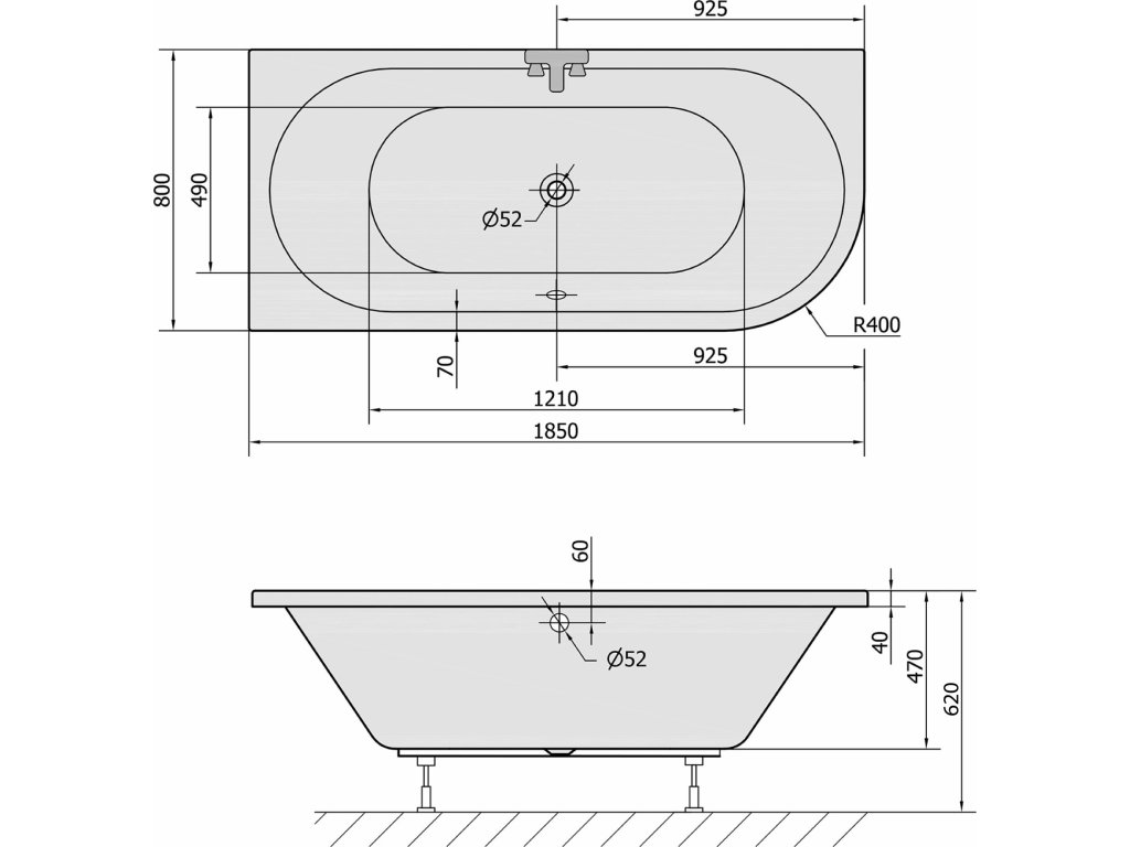 Polysan VIVA L asymetrická vana 185x80x47cm, bílá 72099