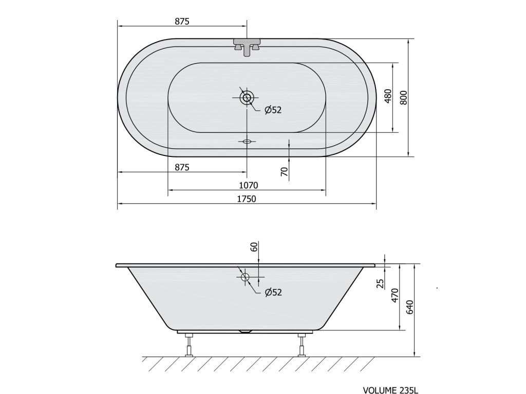 Polysan VIVA O oválná vana 175x80x47cm, bílá 79119