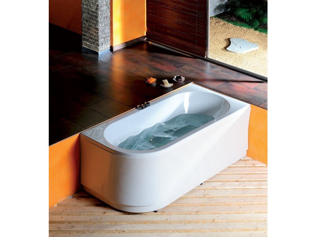 Vana s pohodlně tvarovanými stěnami pro opření zad na obou stranách a odtokem umístěným uprostřed.
