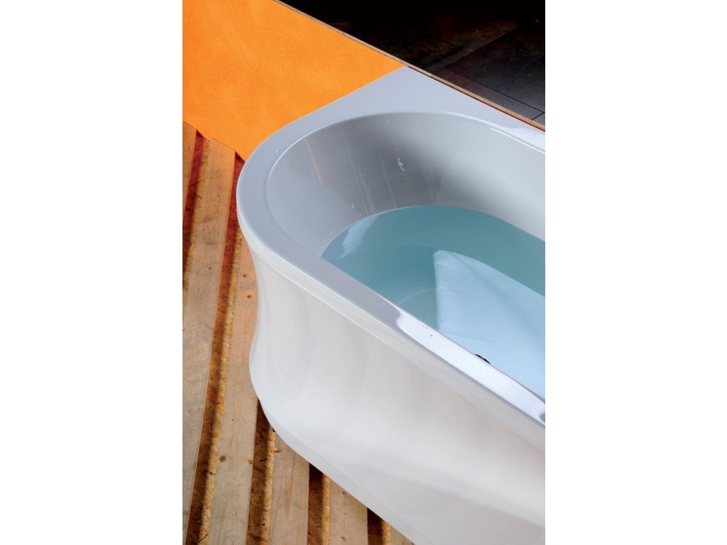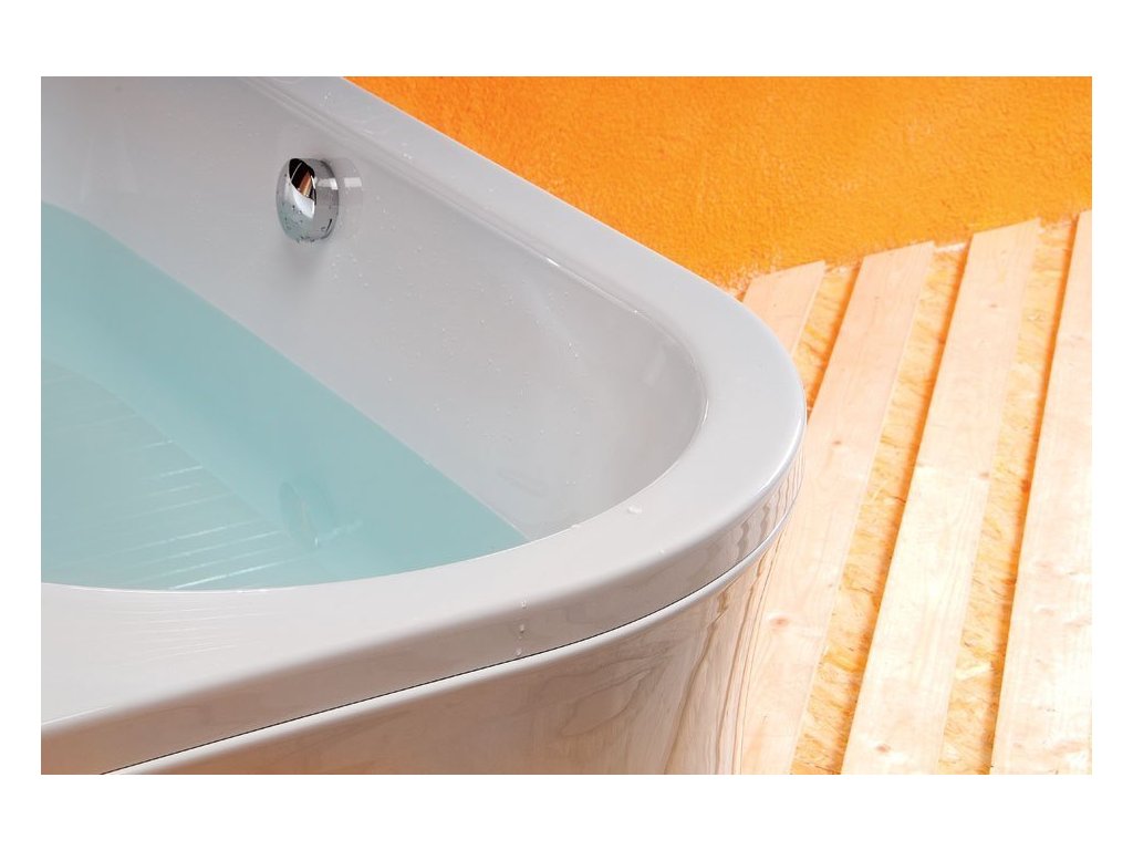 Vana s pohodlně tvarovanými stěnami pro opření zad na obou stranách a odtokem umístěným uprostřed.