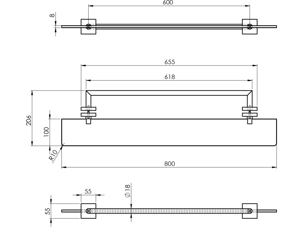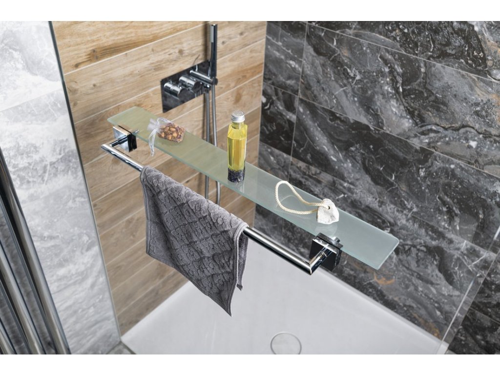Polysan X-SQUARE police s držákem osušky na skleněnou zástěnu, chrom XQ458