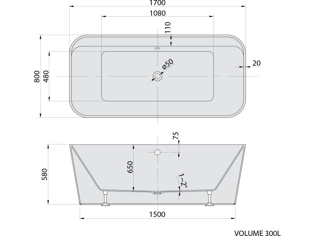 Polysan ZARY volně stojící vana 170x80x58cm, bílá 68658