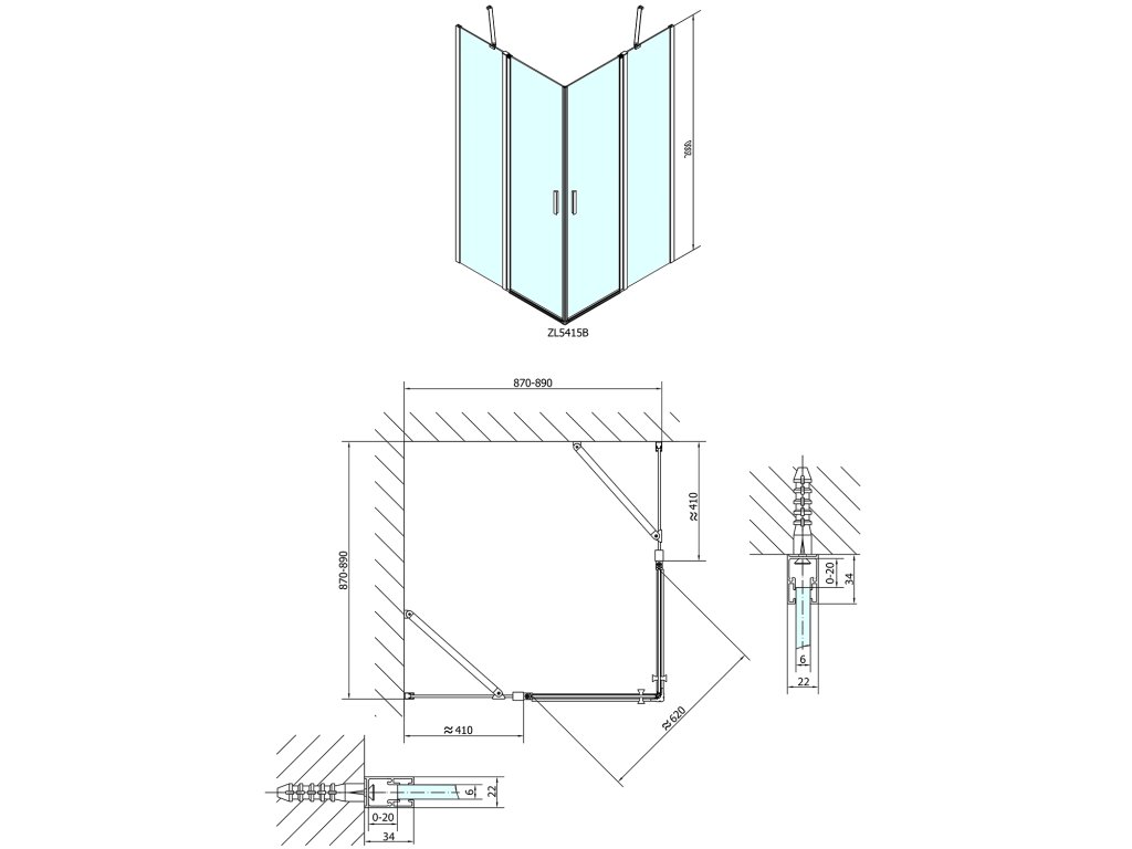 - Skládací dveře 700 až 900 mm v provedení levá a pravá lze instalovat do niky nebo v kombinaci L/R vytvořit čtvercovou nebo obdélníkovou zástěnu s rohovým vstupem