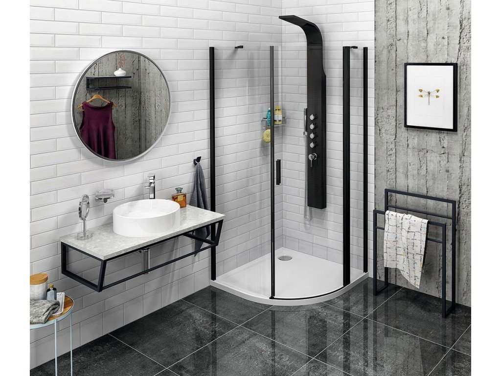 Polysan ZOOM BLACK čtvrtkruhová sprchová zástěna 900x900mm, čiré sklo, pravá ZL2615BR