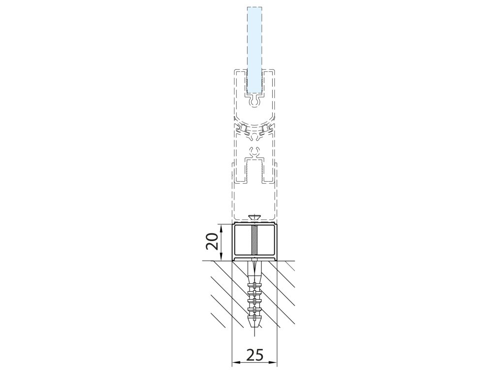 Instaluje se na stěnu pod původní stěnový profil. Díky své konstrukci dokonale pasuje na stěnový profil, který si zachovává svou kompaktnost a dokonalou těsnost. Dodáván včetně vrchní krytky.