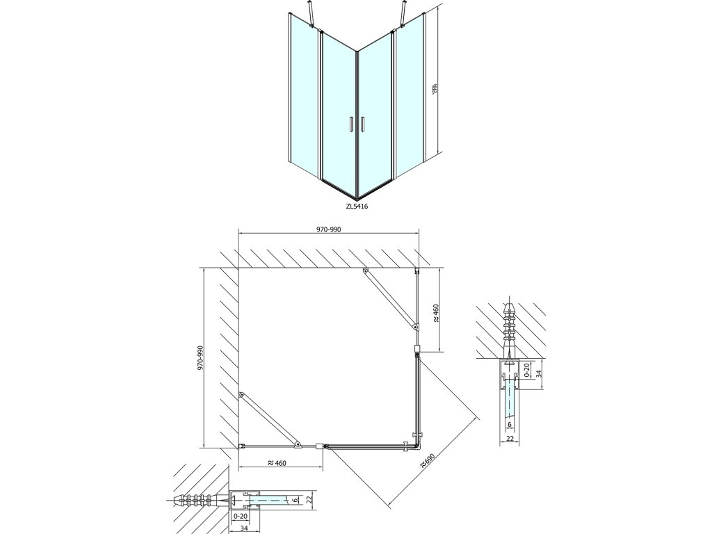- Skládací dveře 700 až 900 mm v provedení levá a pravá lze instalovat do niky nebo v kombinaci L/R vytvořit čtvercovou nebo obdélníkovou zástěnu s rohovým vstupem