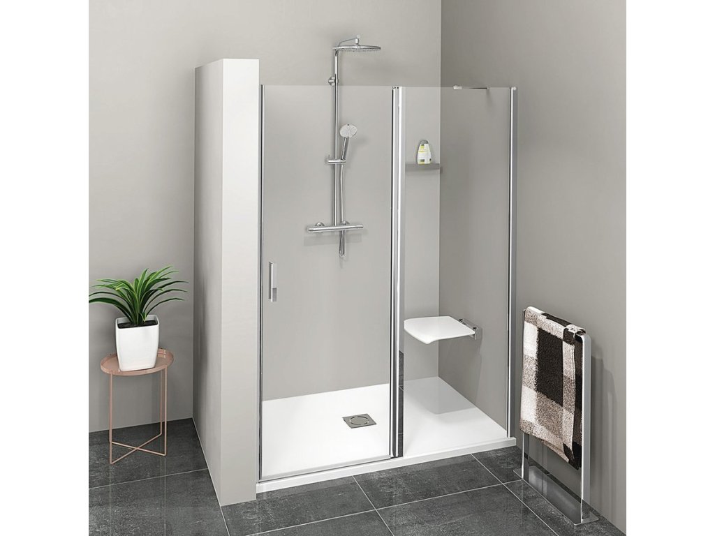 - Skládací dveře 700 až 900 mm v provedení levá a pravá lze instalovat do niky nebo v kombinaci L/R vytvořit čtvercovou nebo obdélníkovou zástěnu s rohovým vstupem