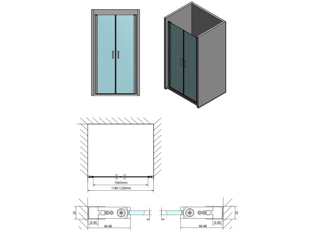 - Dvoukřídlé dveře 800, 900, 1000 a 1200 mm jsou vhodné pouze pro instalaci do niky, nelze je kombinovat s boční stěnou